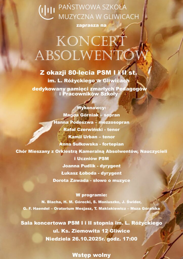 Serdecznie zapraszamy na Koncert Absolwentów 26 października 2025r. o godz. 17:00 w sali koncertowej PSM.