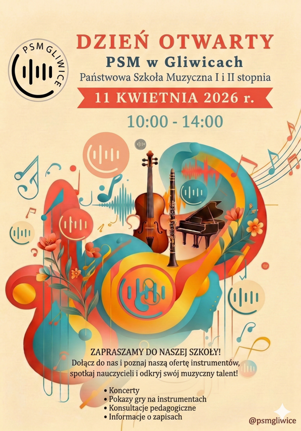 Zapraszamy na Dzień Otwarty Państwowej Szkoły Muzycznej I i II st. im. Ludomira Różyckiego w Gliwicach.